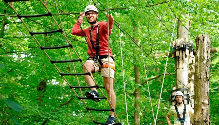 Eine Ausrüstung (Helme und Klettergurte) und jede Menge Team Spirit bekommt ihr bei uns.